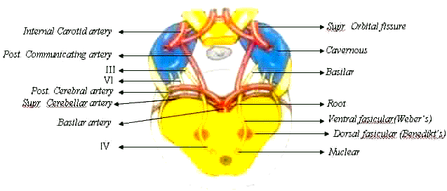 peduncle. It is characterized by an ipsilateral third nerve palsy and